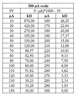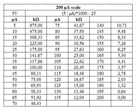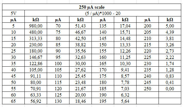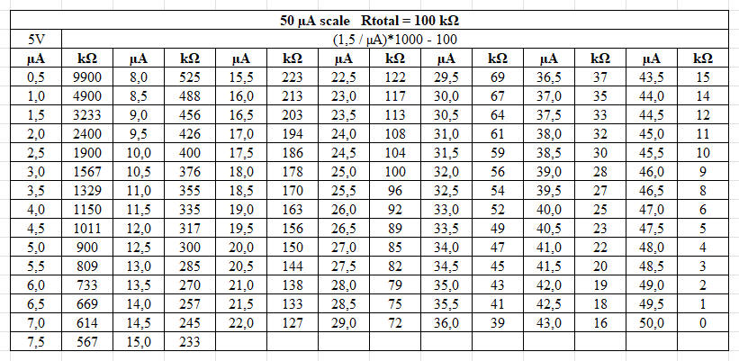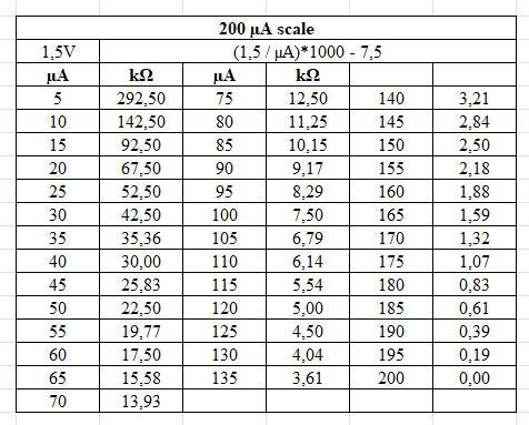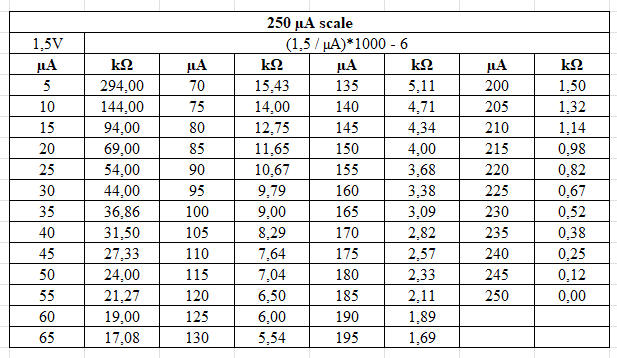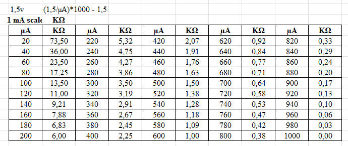 This means that a resistance will cause a deflection of 500 µA (0.5 mA). |