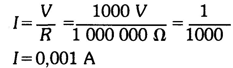 Par exemple, l'application d'une tension de 1000V aux bornes d'une résistance de 1 000 000Ω fera conduire un courant de seulement 1/ 1000 A.