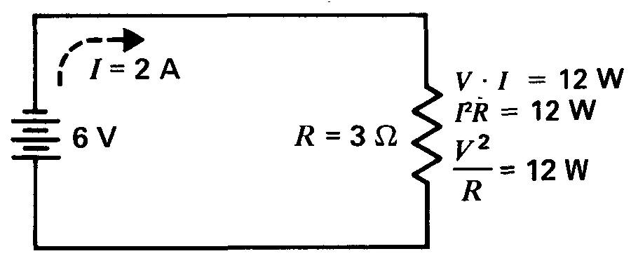 À la figure 2-2, par exemple, une tension de 6V est appliquée aux bornes d'une résistance R de 3Ω.