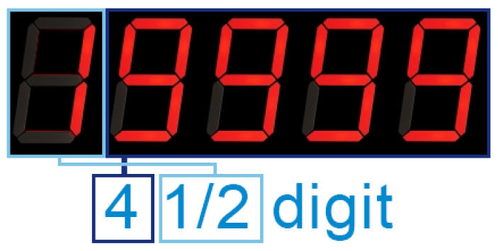 Cela signifie qu'un compteur à 3 3/4 chiffres peut indiquer un maximum de 2999 ou 6999 ou 4999 dans ce cas.