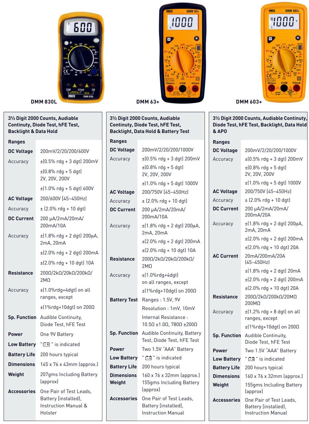 La plage et la résolution du multimètre numérique sont liées et sont parfois spécifiées dans les spécifications d'un multimètre numérique.