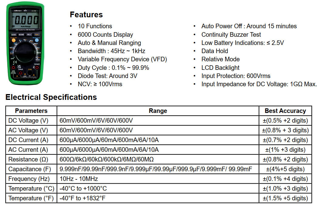 L'intérêt d'une valeur de comptes ou de chiffres plus élevée réside dans le fait qu'elle améliore la précision du multimètre. Il est donc facile de constater, en fonction du prix, si un multimètre affiche une valeur de comptes ou de chiffres plus élevée.