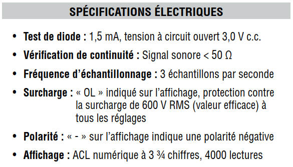 Le multimètre peut afficher ces valeurs dans n'importe quelle plage.