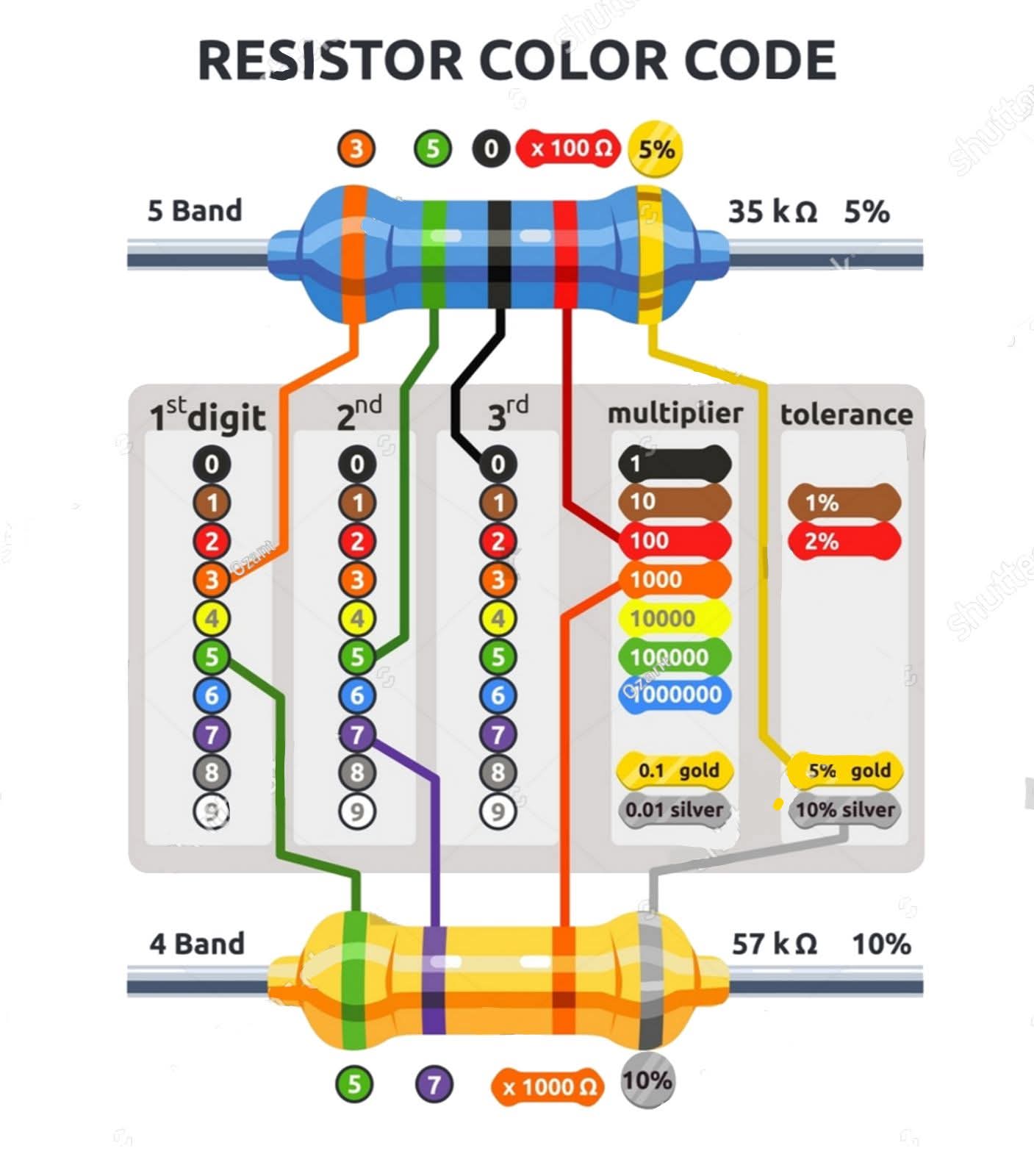 Résistance Codes de valeur 5 Bars 5% et 10%