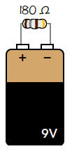 Après avoir divisé la tension par le courant, vous constaterez que pour obtenir un courant de 0,05 A dans la résistance, il vous faut une résistance de 180 Ω.