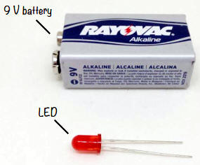 Enroulez le fil rouge de la pince de la batterie sur la branche longue de la LED.