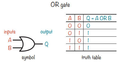 La porte OR vérifie si l'entrée A ou B est à 1.