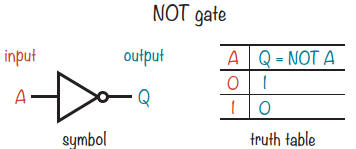 La porte NOT , aussi appelée inverseur, ne possède qu'une entrée et une sortie, et son fonctionnement est très simple :