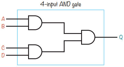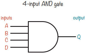 Par exemple, voici un symbole de porte AND à 4 entrées :