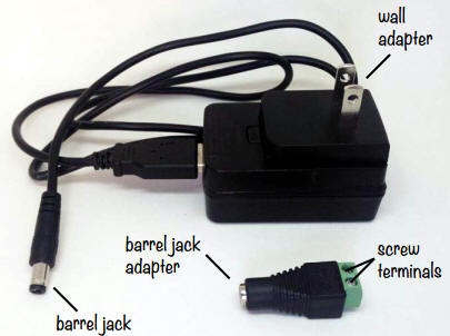L'adaptateur jack cylindrique doit comporter des repères + et – pour indiquer l'alimentation. Desserrez simplement les vis de l'adaptateur, insérez un fil dans chaque connecteur, puis resserrez les vis.