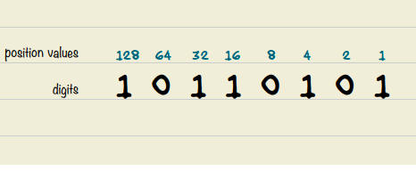 Ensuite, inscrivez la valeur de chaque position au-dessus de chaque chiffre. Le binaire fonctionne de la même manière que le décimal, mais la base est 2.