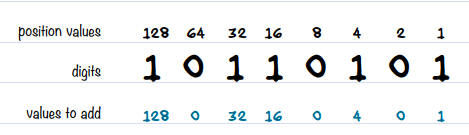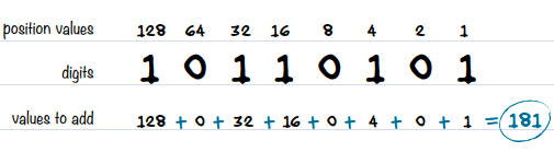 Le nombre binaire 1011 0101 est 181 en décimal.
