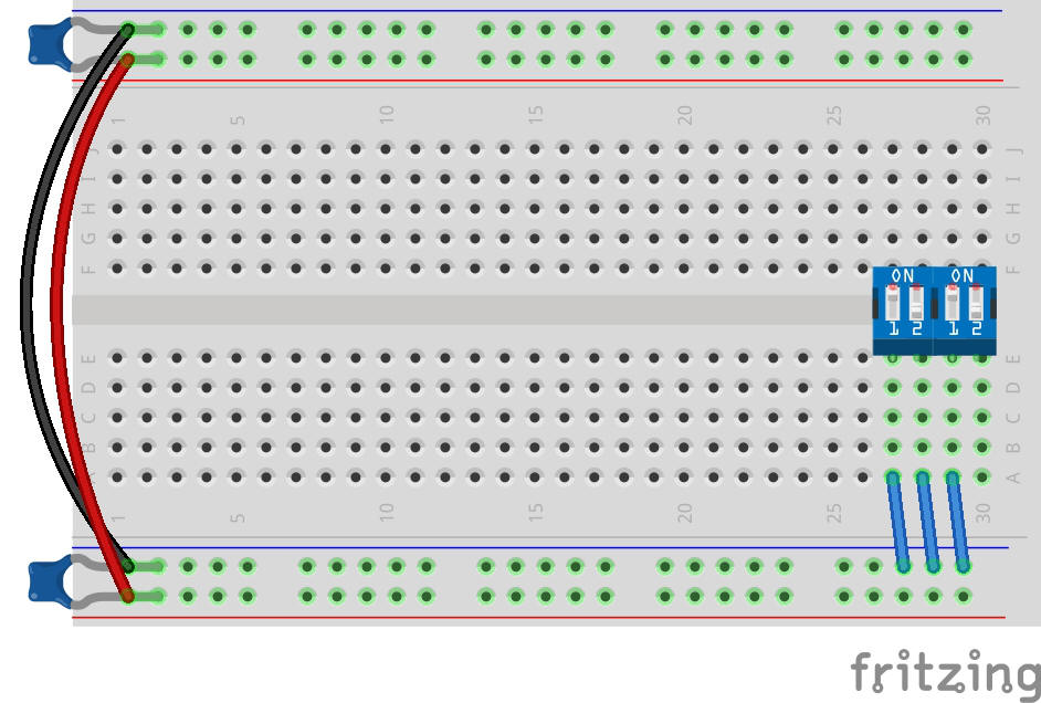 Par exemple, comme chaque chiffre n'a que deux valeurs possibles, un ou zéro, il est facile de créer un bloc mémoire simple pour stocker des nombres binaires à l'aide de commutateurs, comme vous l'avez fait avec le commutateur DIP du projet n° 20.