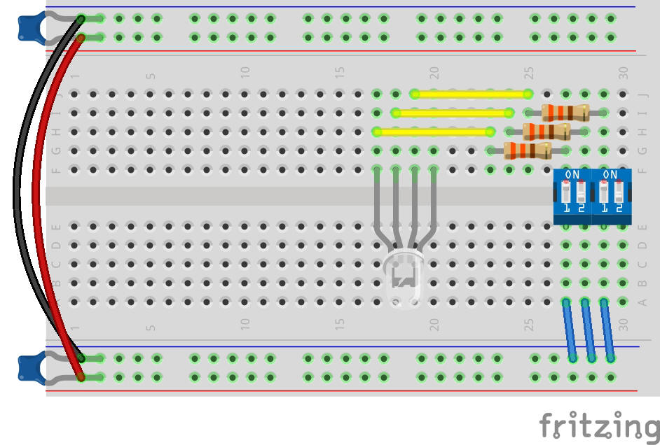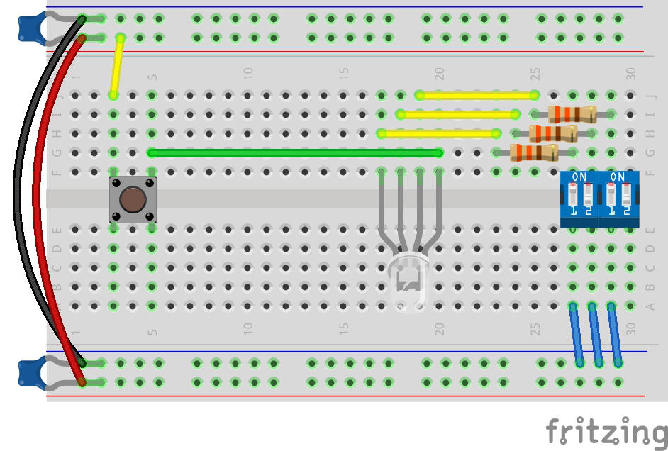 Ce circuit est idéal pour vous entraîner à la soudure. Procurez-vous une carte de prototypage et soudez le circuit dessus pour avoir un jeu de devinettes de couleurs permanent à emporter avec vous lors de vos longs trajets en voiture.