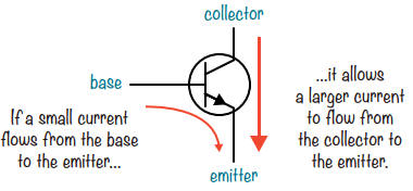 base d'un transistor vers l'émetteur, le transistor ferme l'interrupteur,