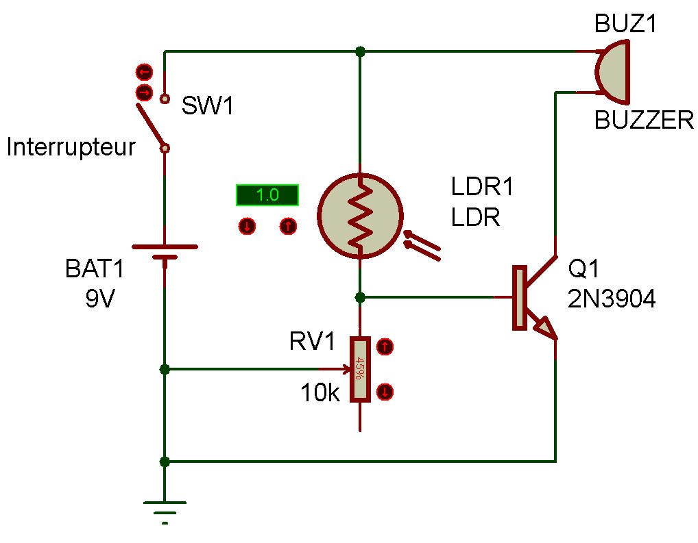Ce circuit déclenche une alarme lorsqu'il détecte de la lumière.
