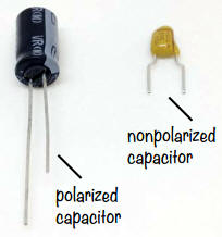 Soyez prudent lorsque vous utilisez des condensateurs polarisés pour les projets de Mes premiers pas en Électronique et pour vos propres projets. Vous devez les connecter correctement pour éviter tout dommage.