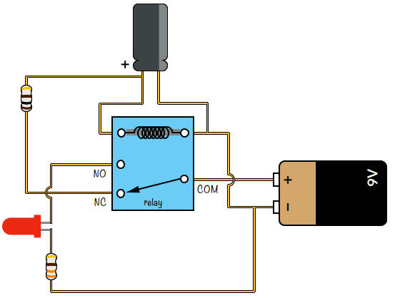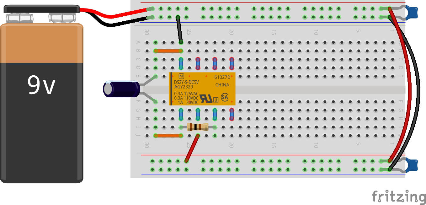 Mais dès que le relais est désactivé, le condensateur devrait se recharger, laissant le relais désactivé pendant une fraction de seconde seulement.