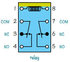 relais, les broches 1 et 8 sont destinées à la bobine de l'électroaimant ; vous