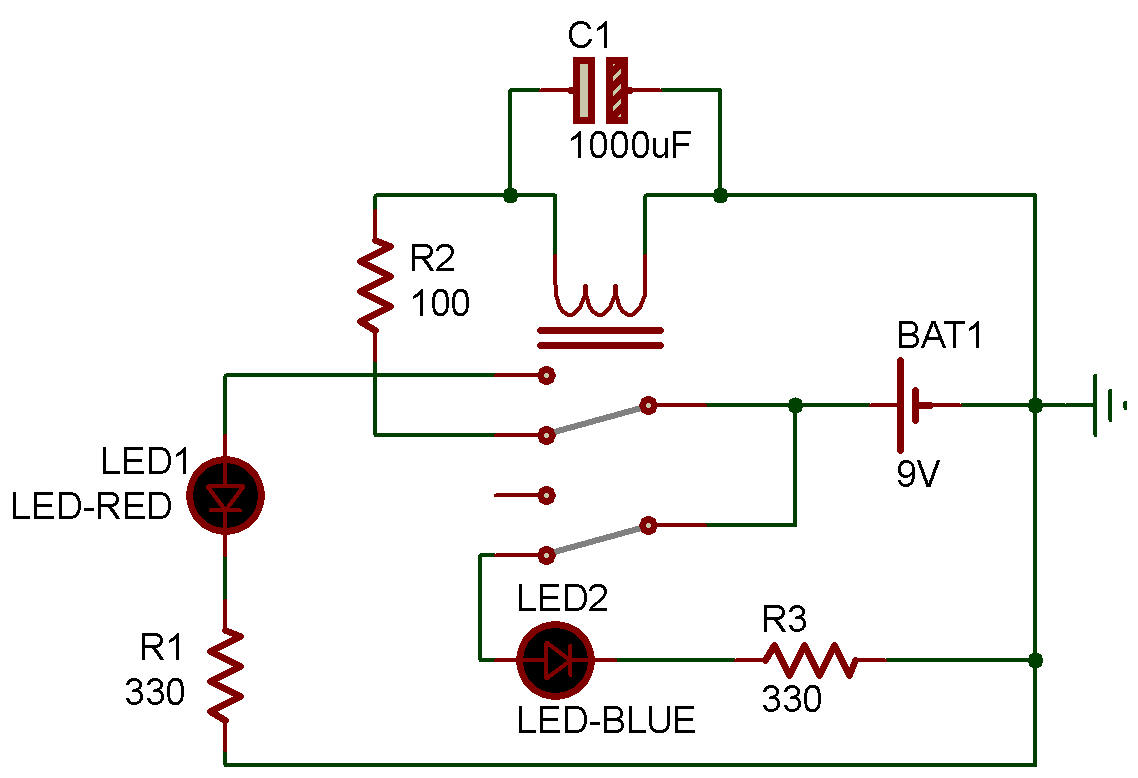 Comme c'est un relais DPDT (Double Pole, Double Throw) vous pouvez ajoutez une deuxième LED Bleu.