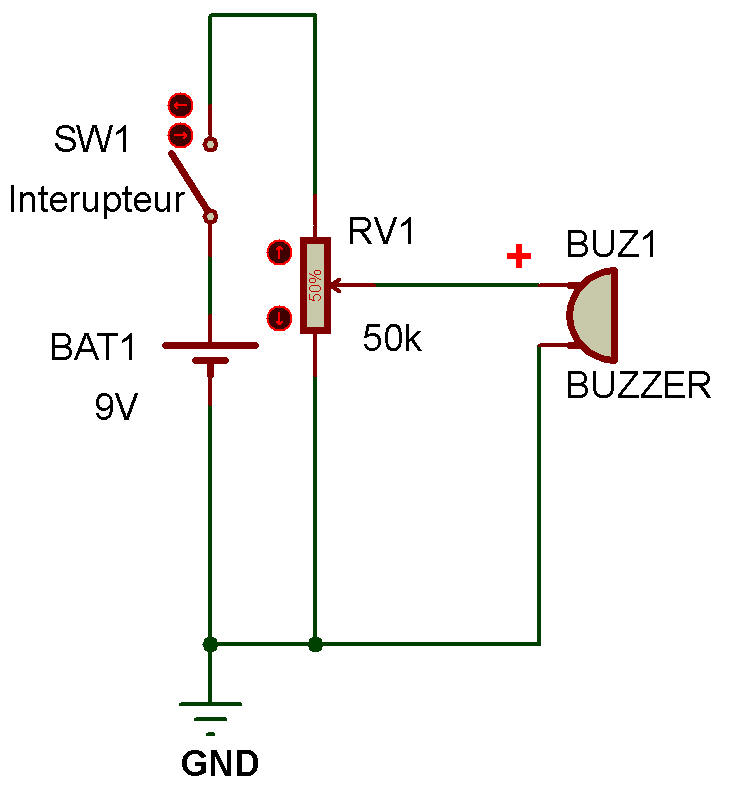 buzzer à l'envers (n'oubliez pas qu'il a un pôle positif et un pôle négatif)