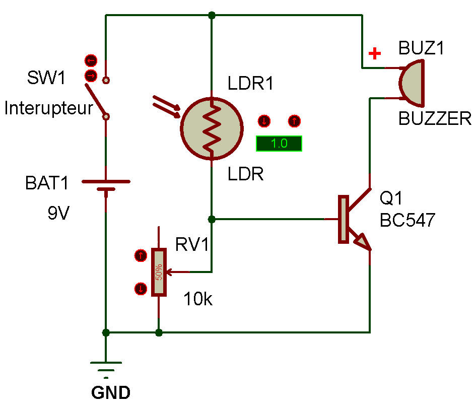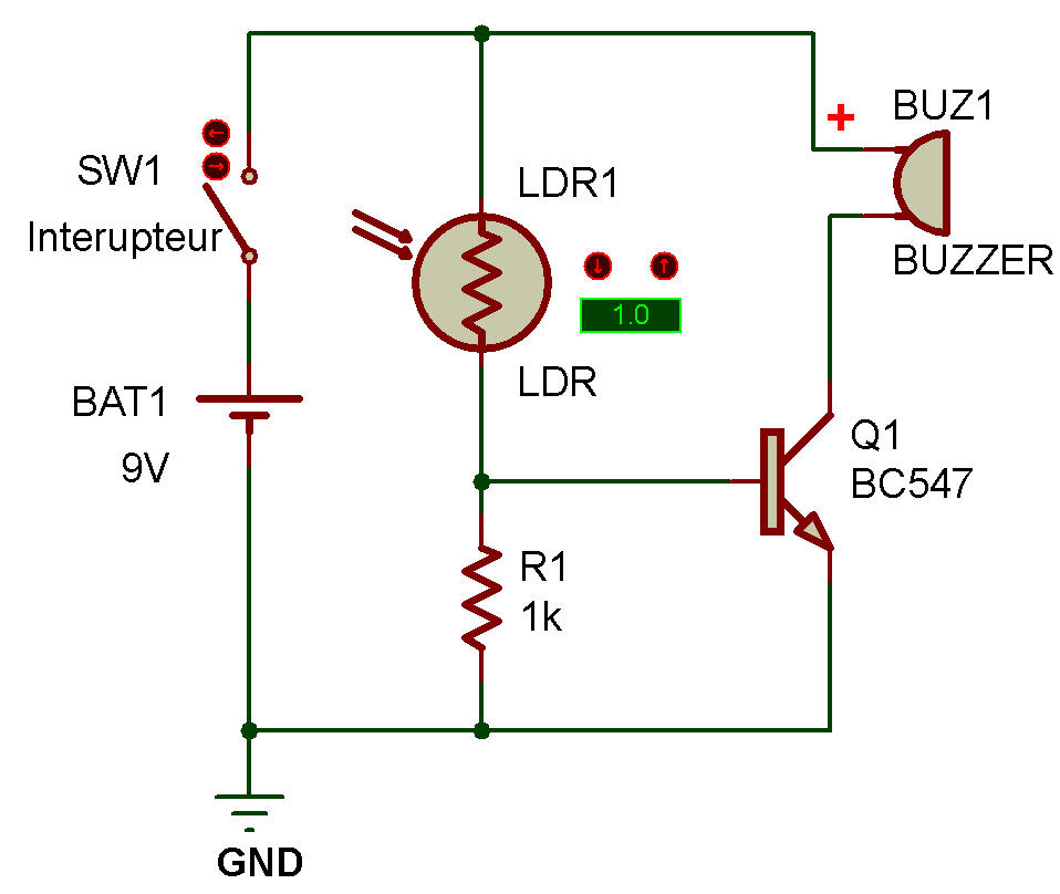Le circuit utilise une photorésistance (LDR) pour