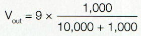 En l'intégrant dans la formule du diviseur de tension, on obtient :