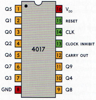 La figure 9-1 illustre le brochage du circuit intégré 4017.