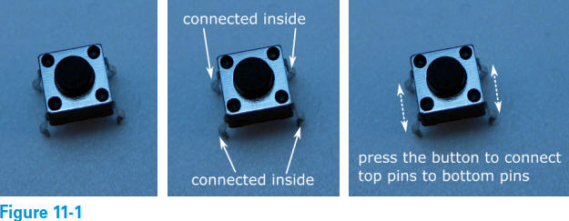Notez que le bouton-poussoir illustré à la figure 11-1 possède quatre broches.