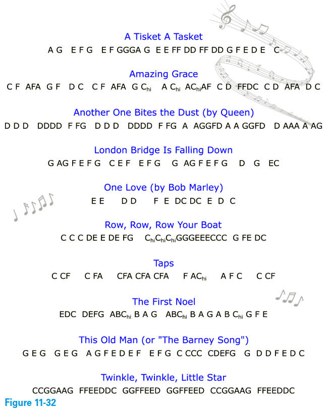 chansons, comme celles illustrées dans la figure 11-32. Notez que C sur la