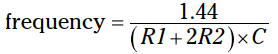 La fréquence du son produit par un circuit de minuterie 555 configuré en oscillateur peut être calculée en insérant les valeurs de R1, R2 et C dans la formule suivante :
