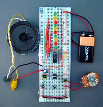 Ajoutez dix LED, quelques résistances et condensateurs, une quantité impressionnante de fils de connexion, un interrupteur à bouton-poussoir et un haut-parleur pour les effets sonores, et vous avez tous les ingrédients nécessaires pour créer un jeu de hasard électronique amusant.