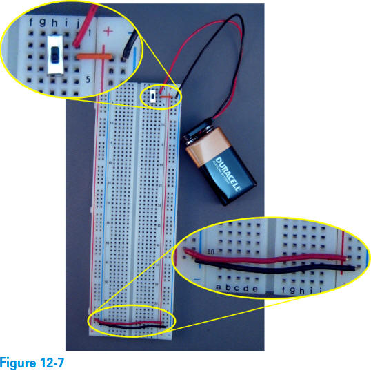 La pile de 9 V est représentée sur la partie droite du schéma.