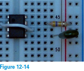 Insérez le condensateur électrolytique de 4,7 µF dans la plaque d'essai, comme