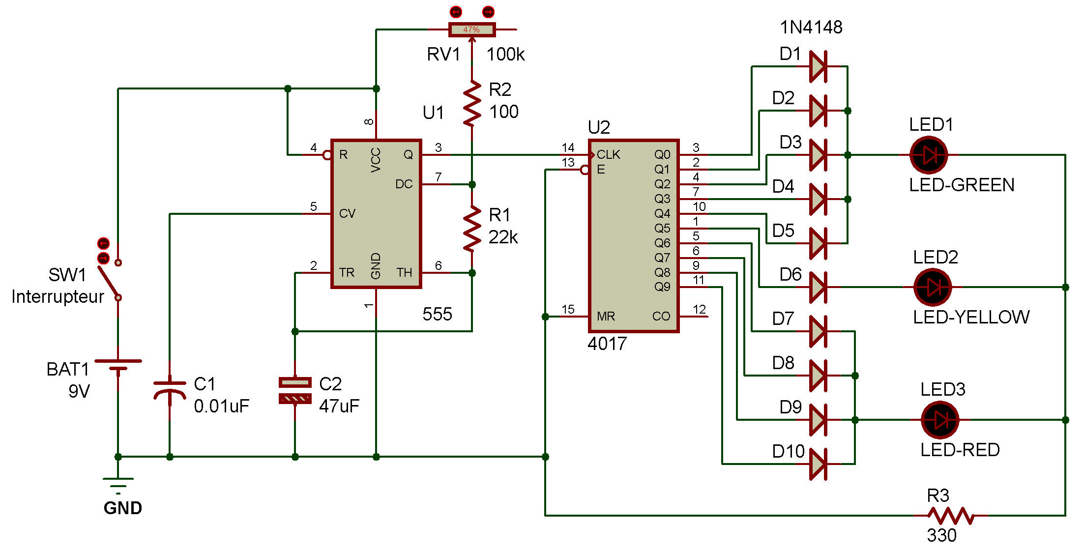 diodes D1 à D10 est d'empêcher le courant de refluer vers la puce 4017.