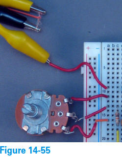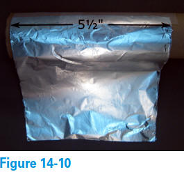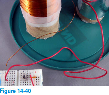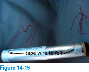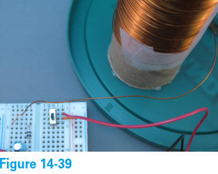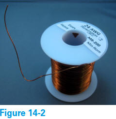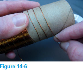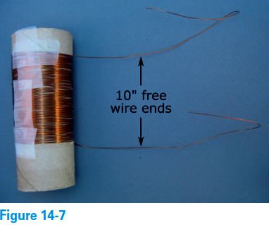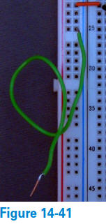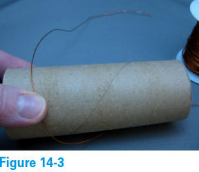 J'ai posé mon fil sur une table, je l'ai maintenu en place avec mon doigt et j'ai frotté doucement le papier de verre dessus, toujours dans le même sens. (Voir figure 14-49.)