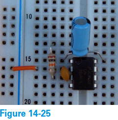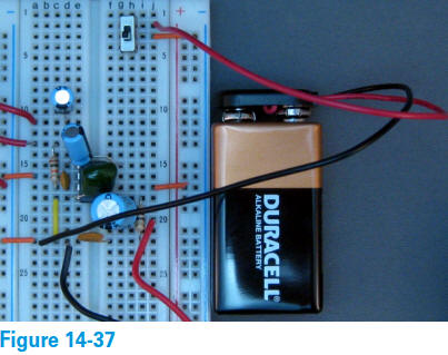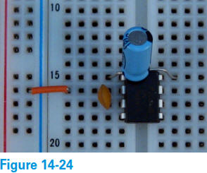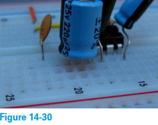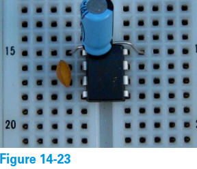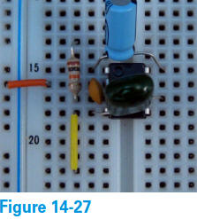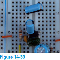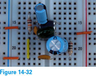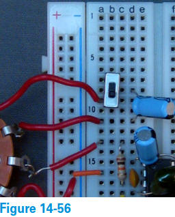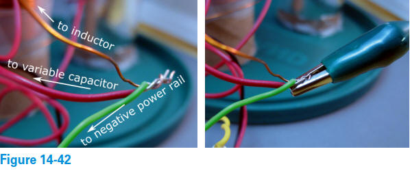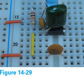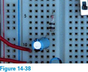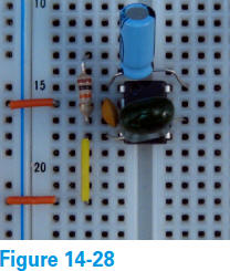 4. Insérez l'anode de la diode au germanium 1N34A dans l'orifice 3e et la cathode (repérée par des rayures noires) dans l'orifice 7e. (Voir figure 14-57.)