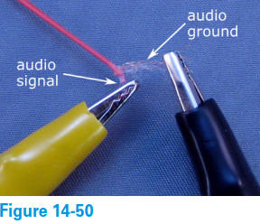 Il suffit d'exposer une partie du fil de cuivre à l'intérieur, puis (dans une étape ultérieure) d'ajuster la connexion entre ce fil de signal et une pince crocodile jusqu'à ce que vous entendiez un son provenant de votre amplificateur.