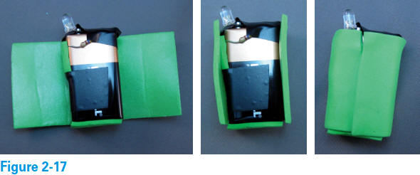 À l'aide de ruban isolant et de mousse plastique, vous pouvez transformer votre circuit à trois composants en un appareil portable et coloré que vous pourrez montrer, voire vendre, à vos amis.