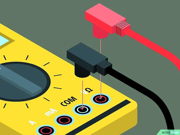 1. Branchez les cordons de test dans les prises de test appropriées. Sur la plupart des multimètres, un cordon de test est noir et l'autre rouge.