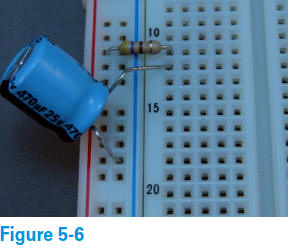 3. Insérez le condensateur électrolytique de 470 μF dans la plaque d'essai, comme illustré à la figure 5-6.