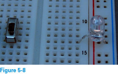 4. Insérez une LED dans la platine d'expérimentation, comme illustré à la figure 5-16.