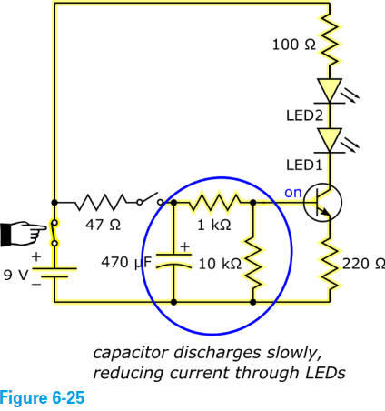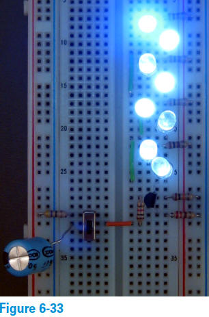 Ce schéma est très similaire à celui du circuit à deux LED (voir figure 6-23), et les deux circuits fonctionnent de la même manière.