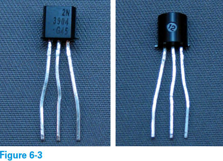 La figure 6-3 montre les vues avant et arrière d'un type particulier de transistor, appelé transistor bipolaire NPN.