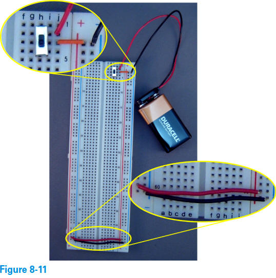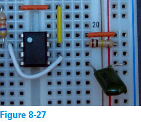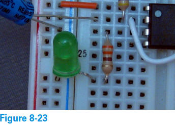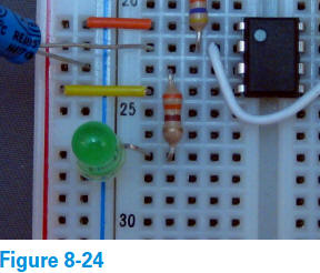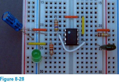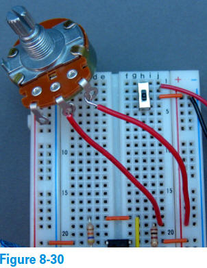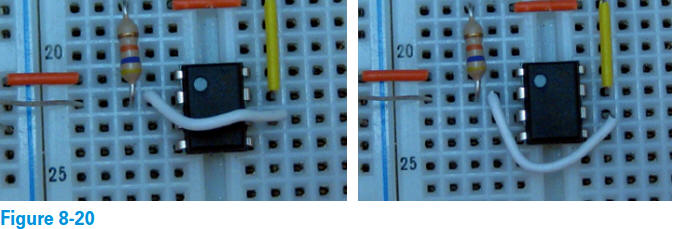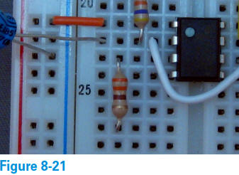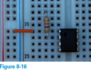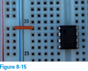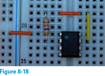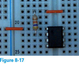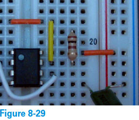 résistance de 100 Ω dans le breadboard, comme illustré sur la figure 8-29.