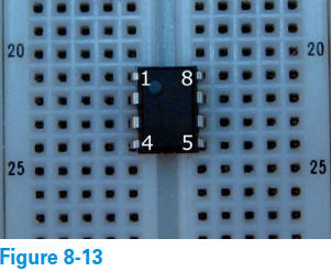 555 (illustrée sur la figure 8-3, avec les étiquettes des broches ajoutées) est