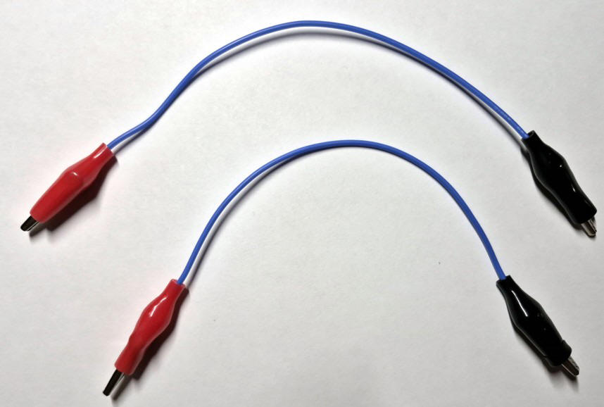 | Des pinces alligators et des connecteurs ronds. | Alligator clips and round connectors. |