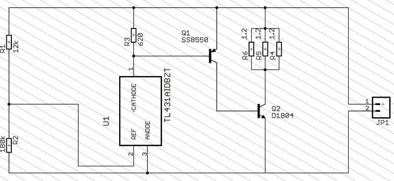 Il s'agit d'un circuit simple composé d'une référence de précision programmable TL431 (U1), d'un transistor PNP à usage général SS8550 (Q1) et d'un transistor de puissance NPN D1804 (Q2).