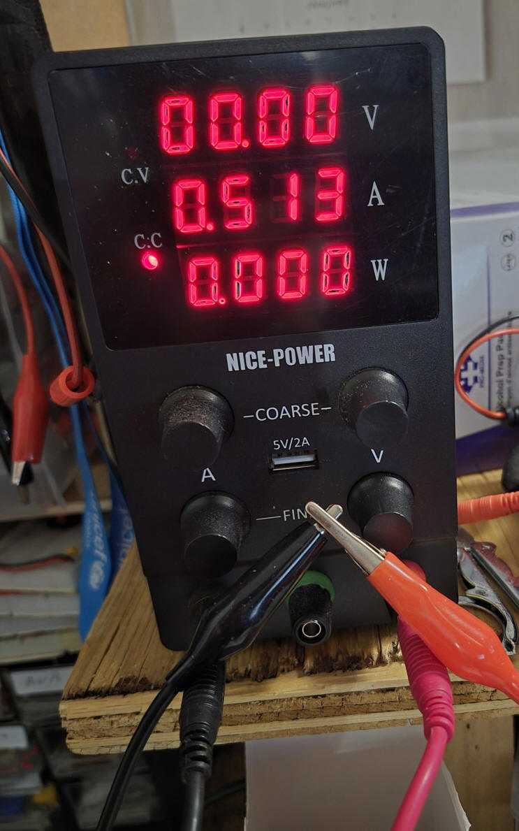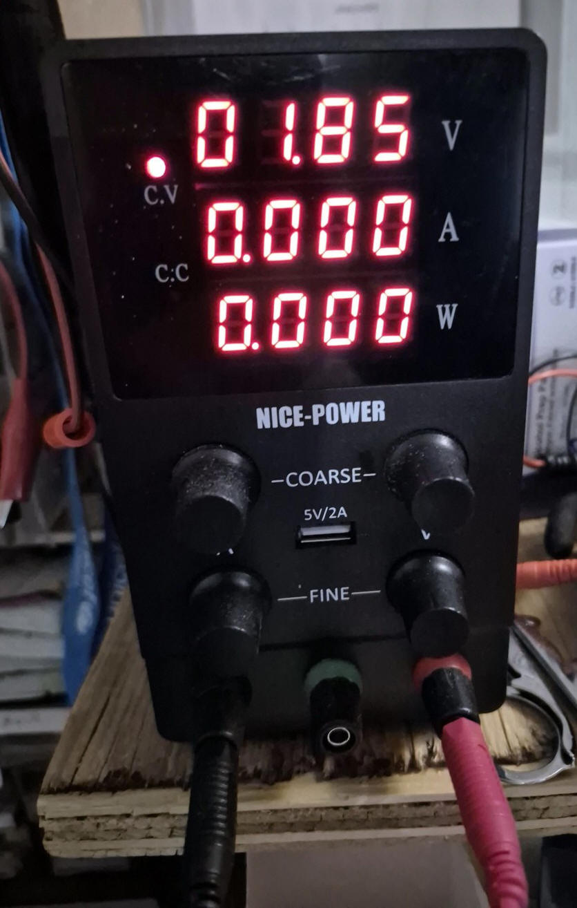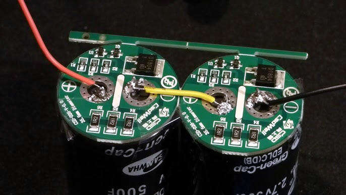 Pour charger le condensateur 500 F Avec le power supply Limiter le courant à 1A. La tension doit être Max 2,7V. Charger jusqu'à l'ampérage soit très bas. Prend environs 22 minutes par condensateur. |
