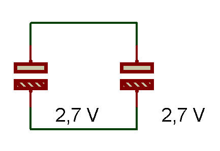2 condensateurs de 500 F 2,7 V / Connect two 500 µF 2.7V capacitors in series